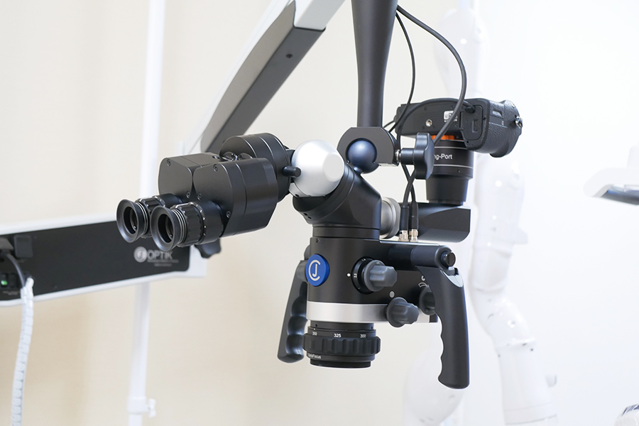 マイクロスコープは歯科用顕微鏡です。肉眼の最大20倍程度まで視野を拡大できるため、小さなむし歯や感染部分の取り残しを防ぎ、より精密な治療につながります。