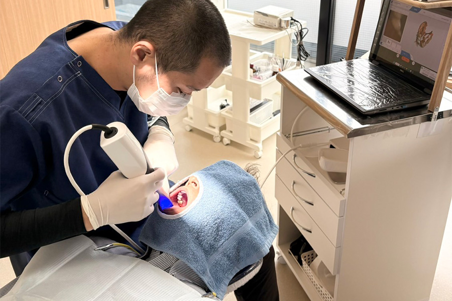 光学スキャナーとは、詰め物や被せ物の型取りの際に、お口の形を読み取る小型カメラです。たった数分お